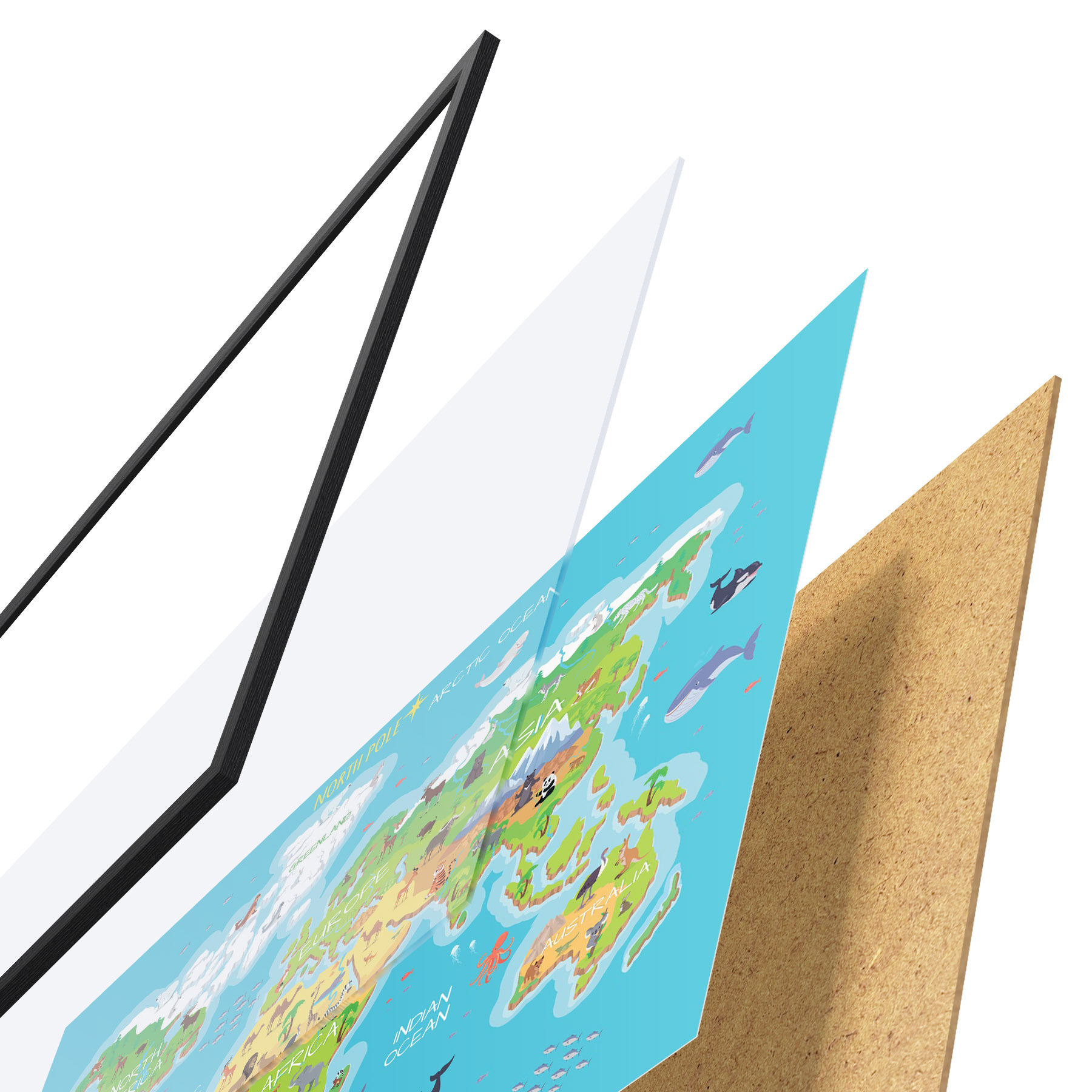 Plakatą sudaro rėmas, pleksiklas, atspausdintas vaizdas ir medžio drožlių plokštės pagrindas. Plakatą galima iš karto pakabinti ant sienos dėl kitoje pusėje esančių laikiklių.