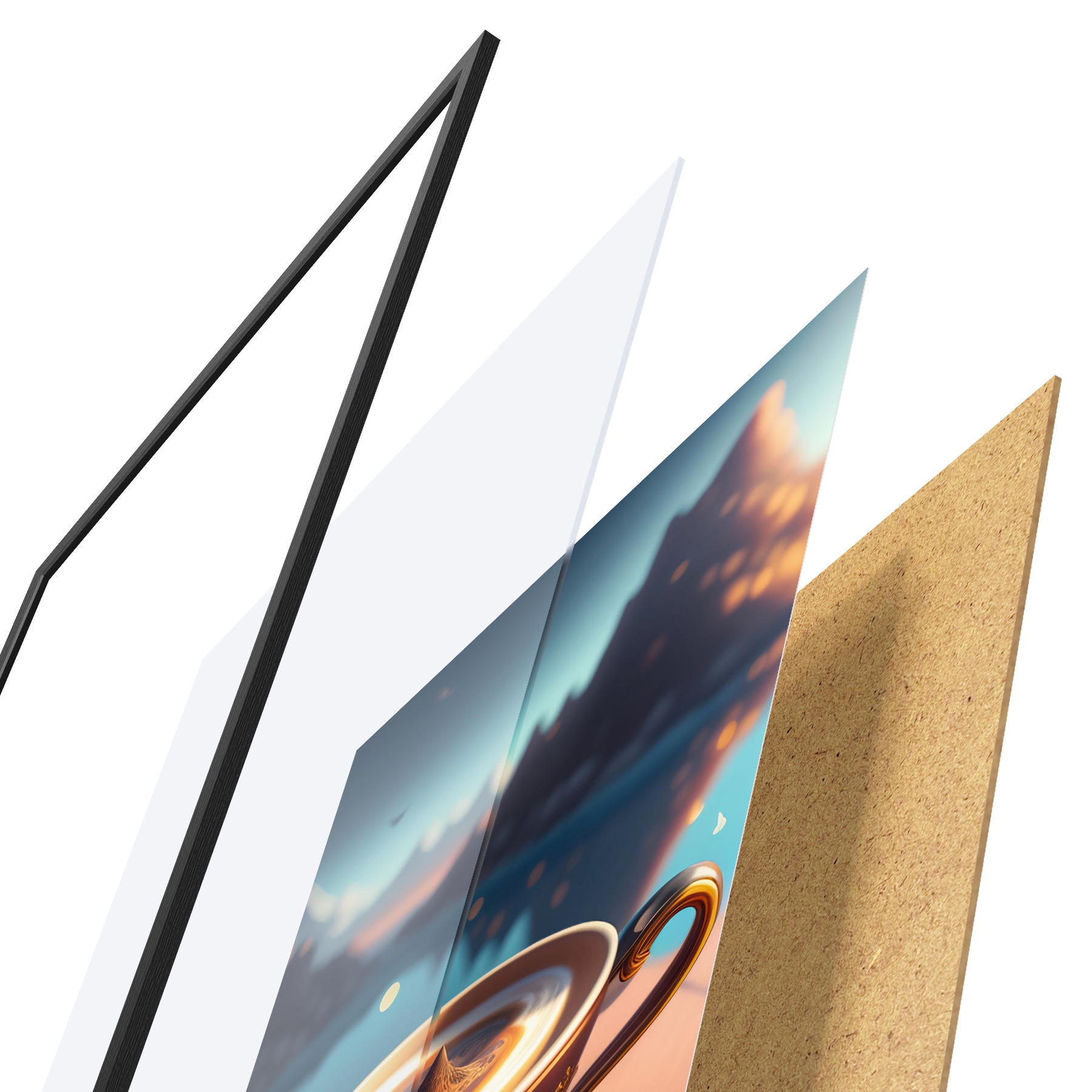 Plakatą sudaro rėmas, pleksiklas, atspausdintas vaizdas ir medžio drožlių plokštės pagrindas. Plakatą galima iš karto pakabinti ant sienos dėl kitoje pusėje esančių laikiklių.