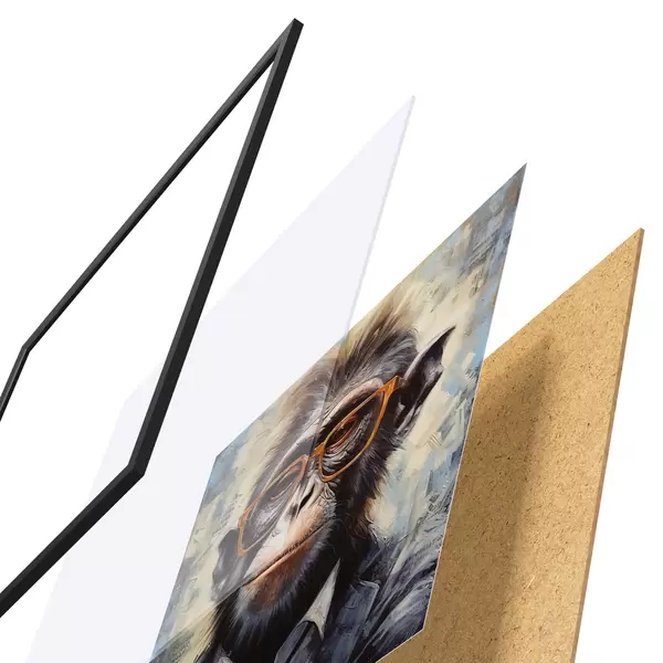 Plakatą sudaro rėmas, pleksiklas, atspausdintas vaizdas ir medžio drožlių plokštės pagrindas. Plakatą galima iš karto pakabinti ant sienos dėl kitoje pusėje esančių laikiklių.