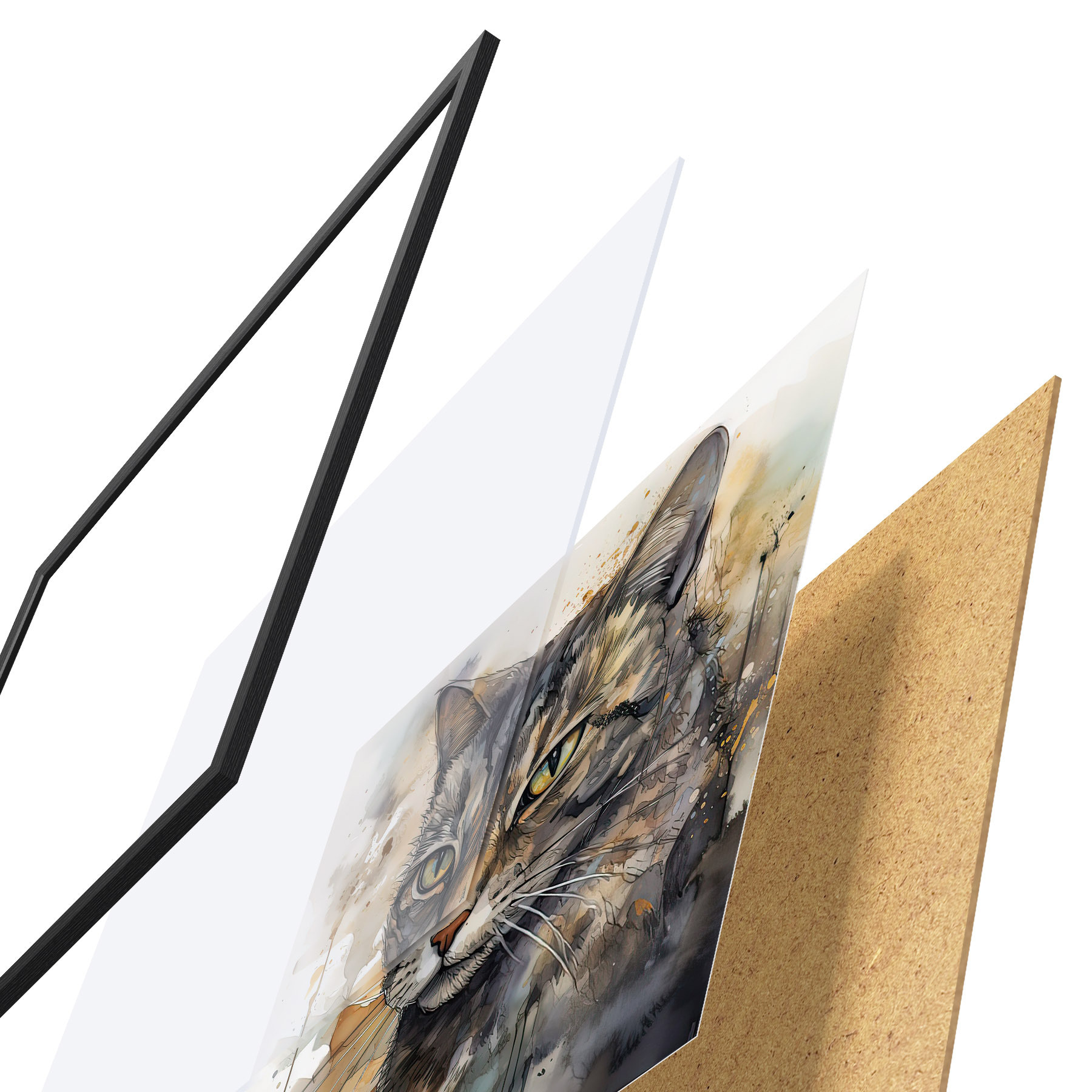 Plakatą sudaro rėmas, pleksiklas, atspausdintas vaizdas ir medžio drožlių plokštės pagrindas. Plakatą galima iš karto pakabinti ant sienos dėl kitoje pusėje esančių laikiklių.