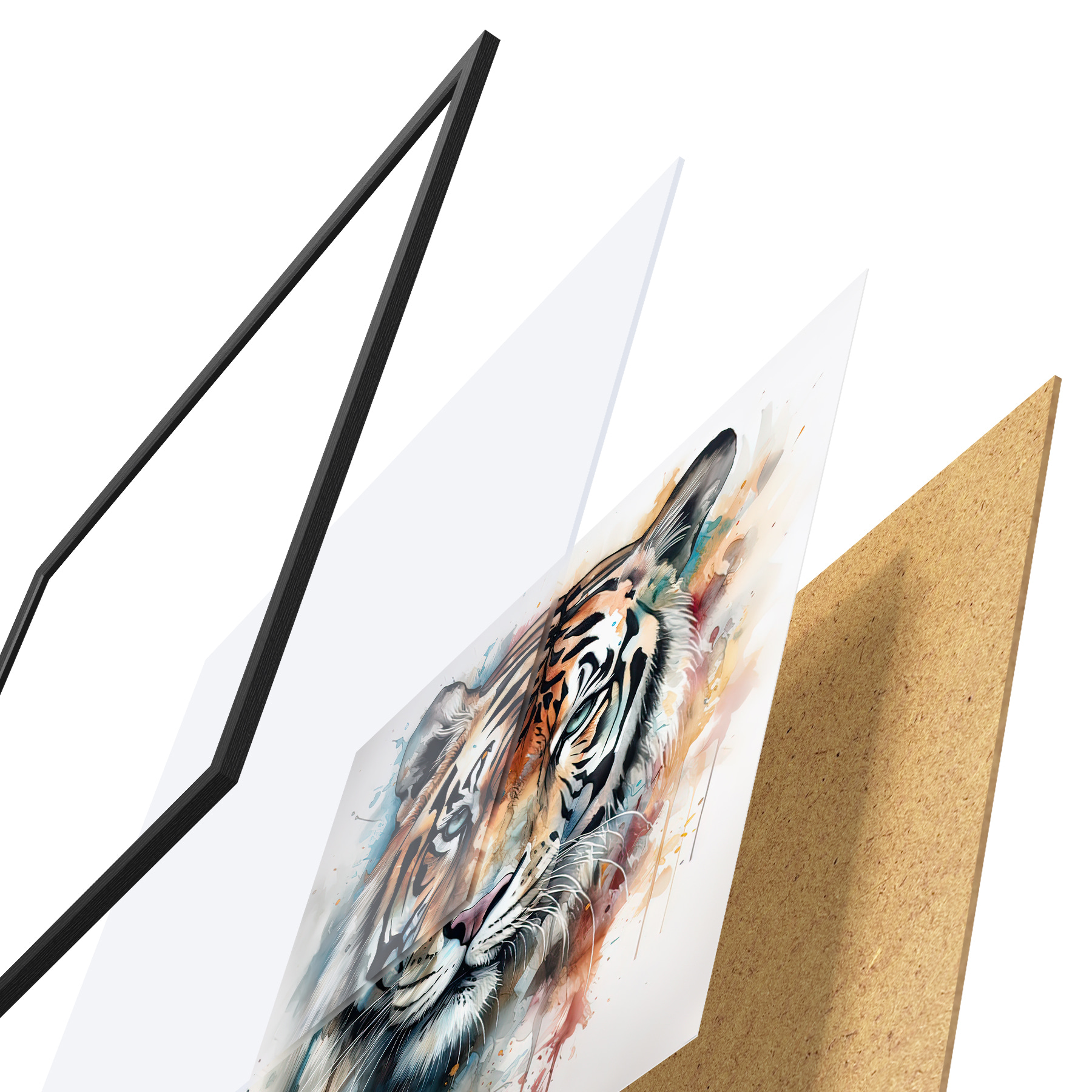 Plakatą sudaro rėmas, pleksiklas, atspausdintas vaizdas ir medžio drožlių plokštės pagrindas. Plakatą galima iš karto pakabinti ant sienos dėl kitoje pusėje esančių laikiklių.