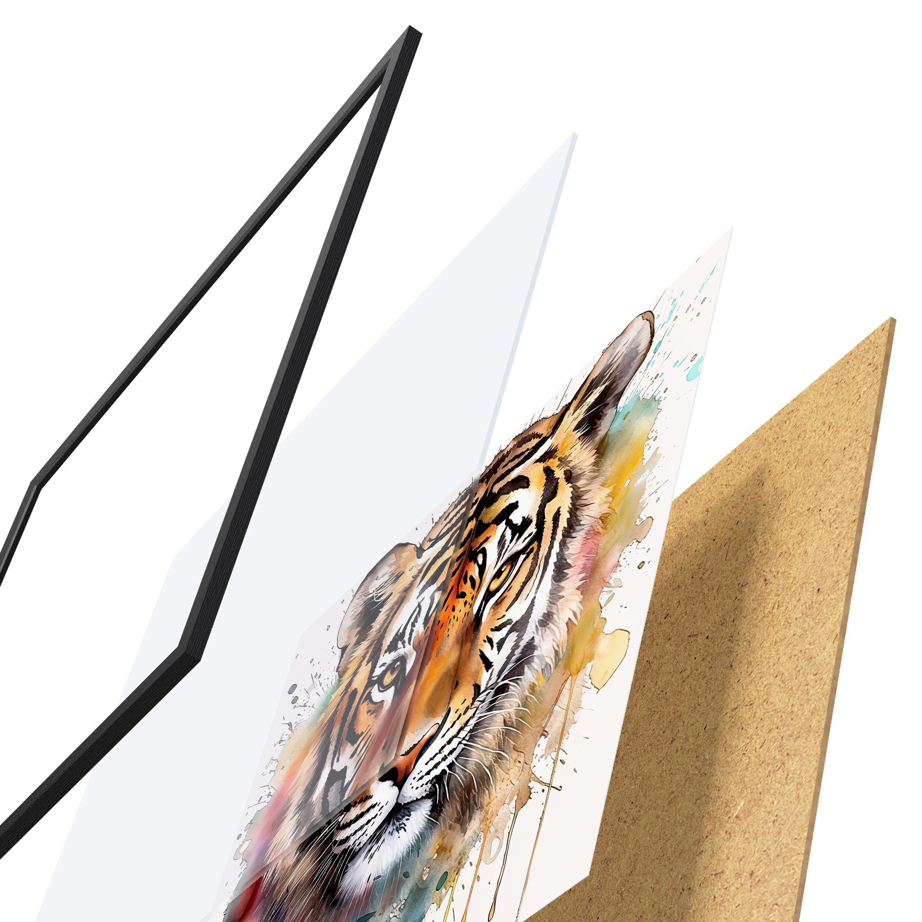 Plakatą sudaro rėmas, pleksiklas, atspausdintas vaizdas ir medžio drožlių plokštės pagrindas. Plakatą galima iš karto pakabinti ant sienos dėl kitoje pusėje esančių laikiklių.