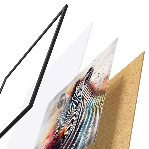 Plakatą sudaro rėmas, pleksiklas, atspausdintas vaizdas ir medžio drožlių plokštės pagrindas. Plakatą galima iš karto pakabinti ant sienos dėl kitoje pusėje esančių laikiklių.