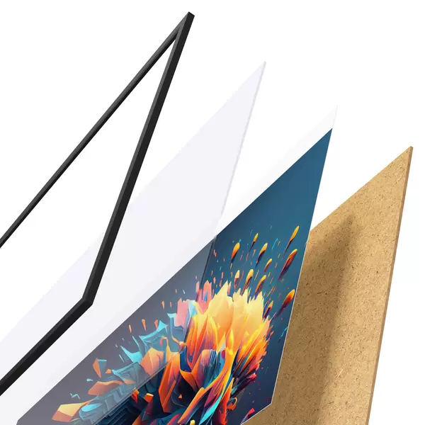 Plakatą sudaro rėmas, pleksiklas, atspausdintas vaizdas ir medžio drožlių plokštės pagrindas. Plakatą galima iš karto pakabinti ant sienos dėl kitoje pusėje esančių laikiklių.