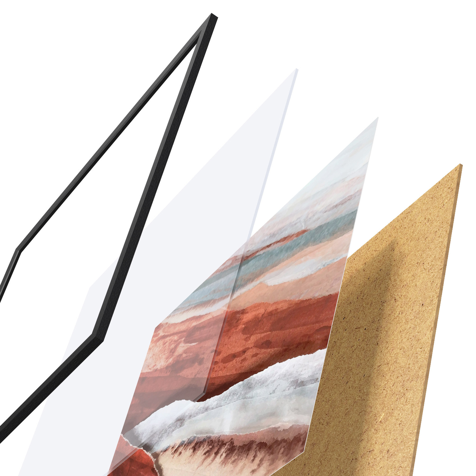 Plakatą sudaro rėmas, pleksiklas, atspausdintas vaizdas ir medžio drožlių plokštės pagrindas. Plakatą galima iš karto pakabinti ant sienos dėl kitoje pusėje esančių laikiklių.