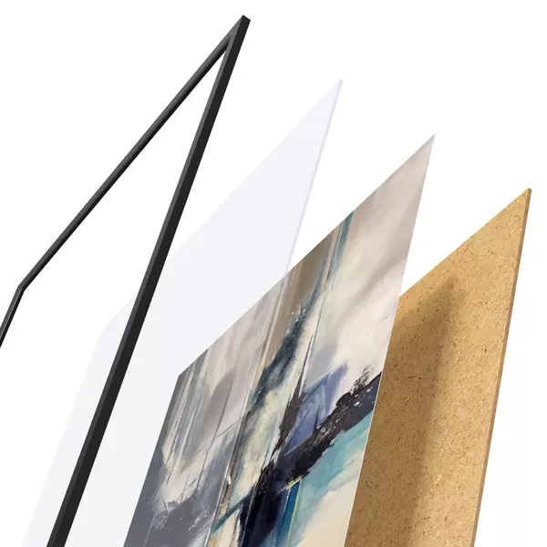 Plakatą sudaro rėmas, pleksiklas, atspausdintas vaizdas ir medžio drožlių plokštės pagrindas. Plakatą galima iš karto pakabinti ant sienos dėl kitoje pusėje esančių laikiklių.