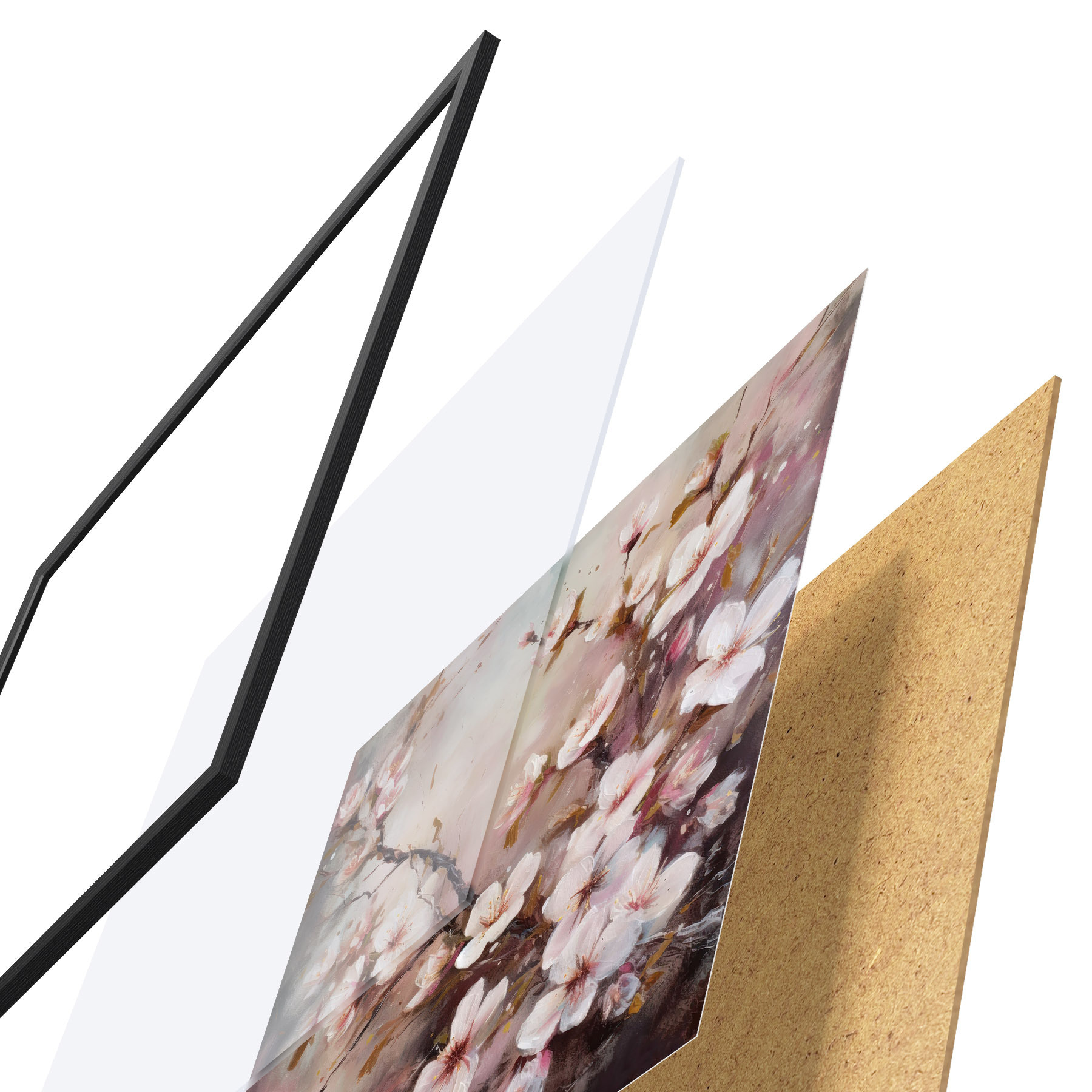 Plakatą sudaro rėmas, pleksiklas, atspausdintas vaizdas ir medžio drožlių plokštės pagrindas. Plakatą galima iš karto pakabinti ant sienos dėl kitoje pusėje esančių laikiklių.