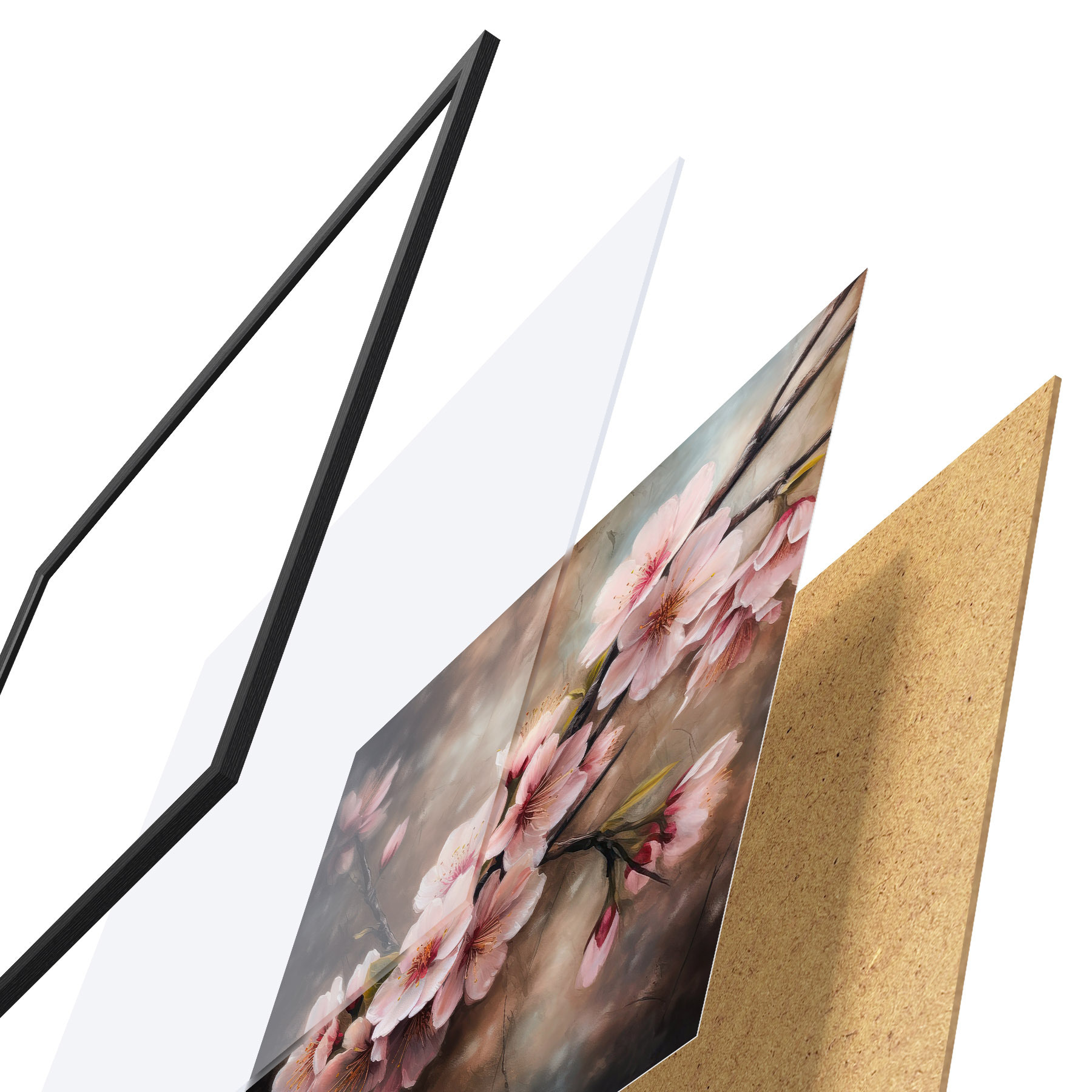 Plakatą sudaro rėmas, pleksiklas, atspausdintas vaizdas ir medžio drožlių plokštės pagrindas. Plakatą galima iš karto pakabinti ant sienos dėl kitoje pusėje esančių laikiklių.