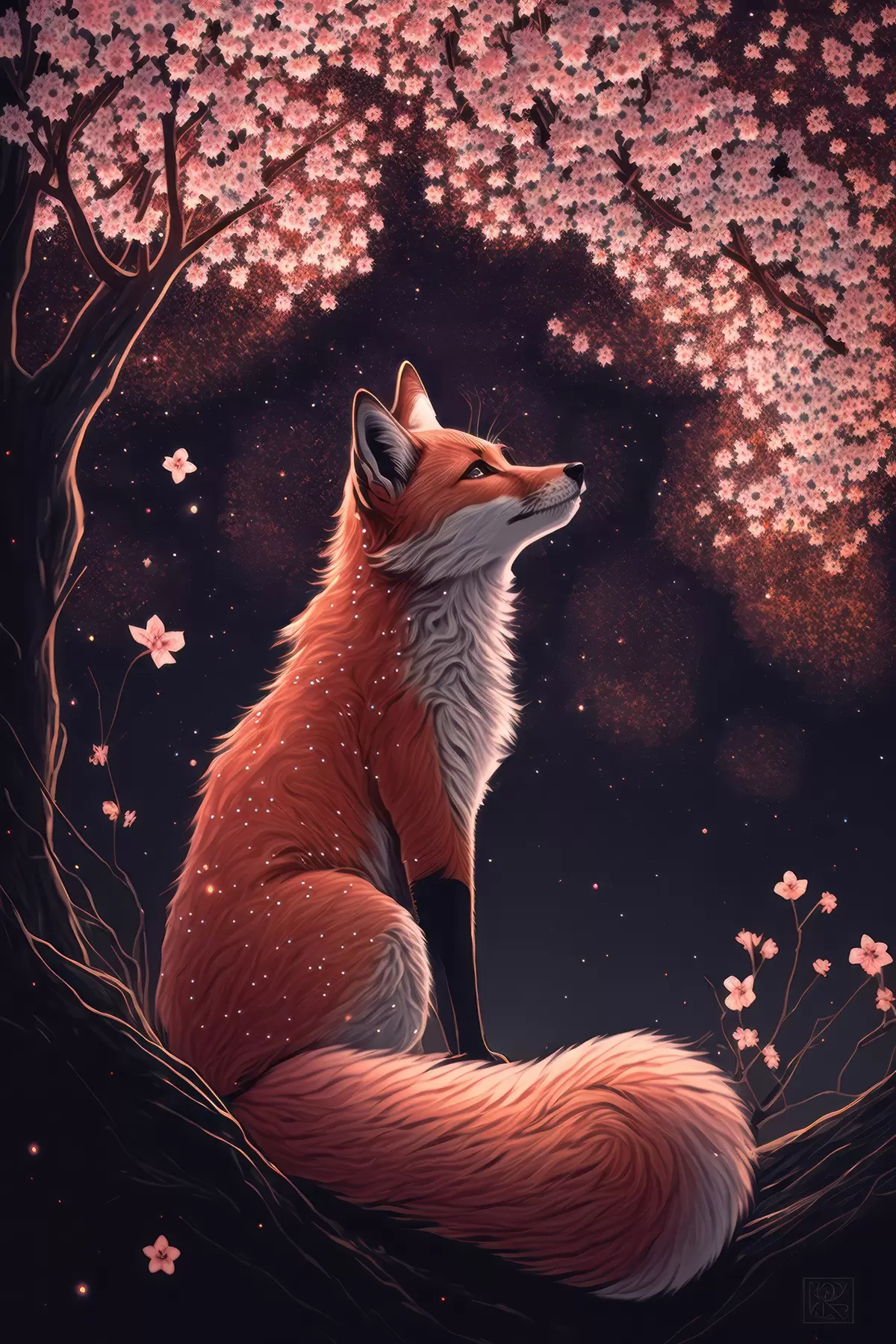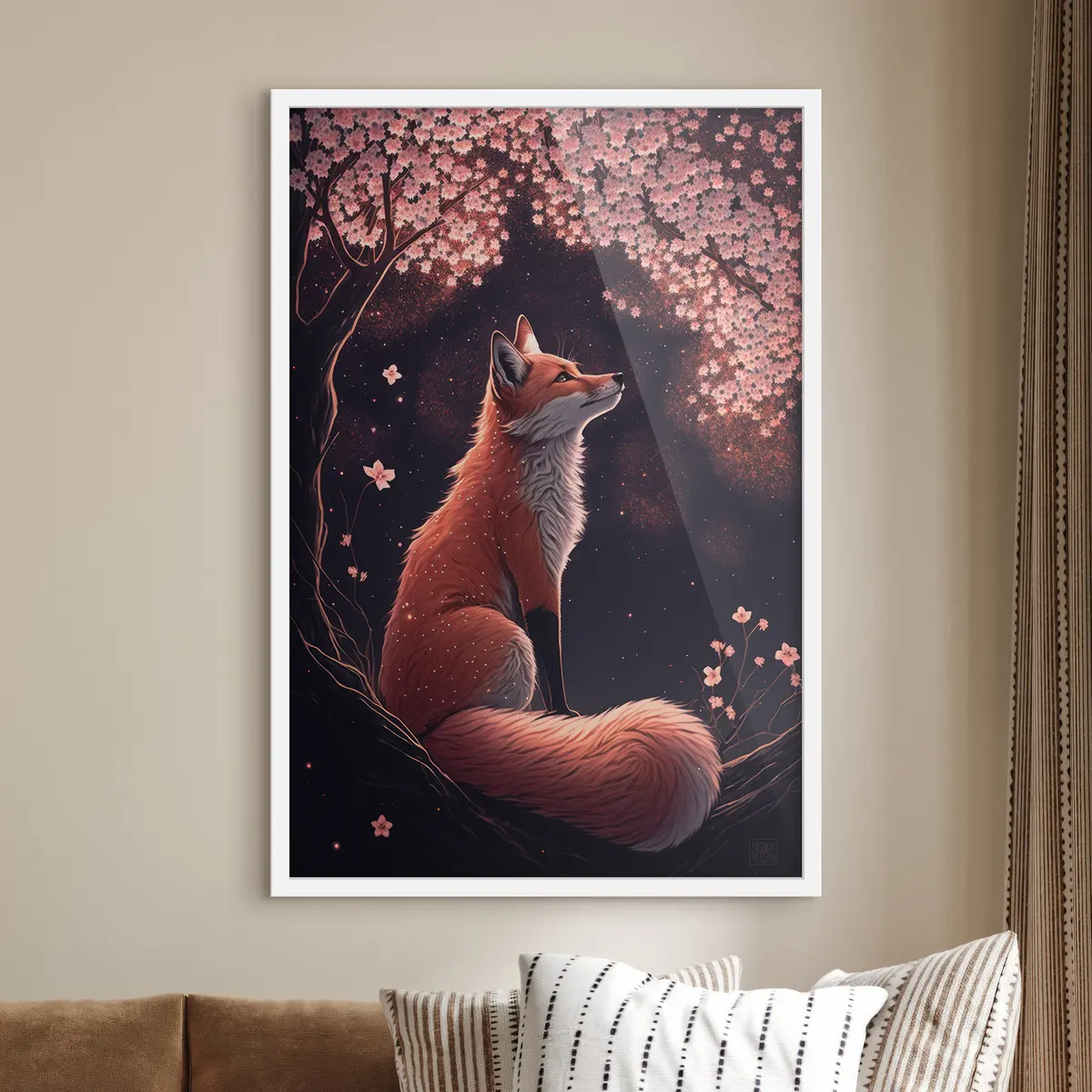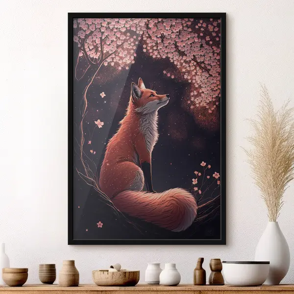 Plakatas Lapė po žydinčių vyšnių žiedais f32547