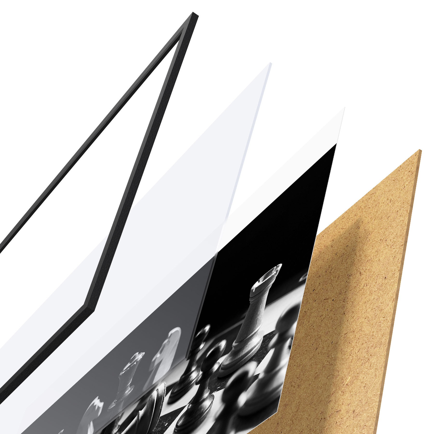 Plakatą sudaro rėmas, pleksiklas, atspausdintas vaizdas ir medžio drožlių plokštės pagrindas. Plakatą galima iš karto pakabinti ant sienos dėl kitoje pusėje esančių laikiklių.