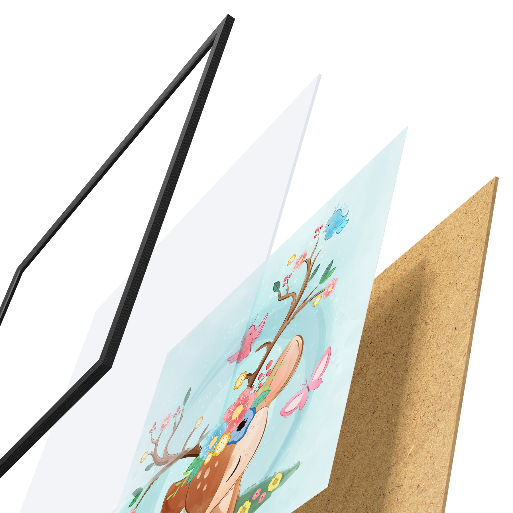 Plakatą sudaro rėmas, pleksiklas, atspausdintas vaizdas ir medžio drožlių plokštės pagrindas. Plakatą galima iš karto pakabinti ant sienos dėl kitoje pusėje esančių laikiklių.
