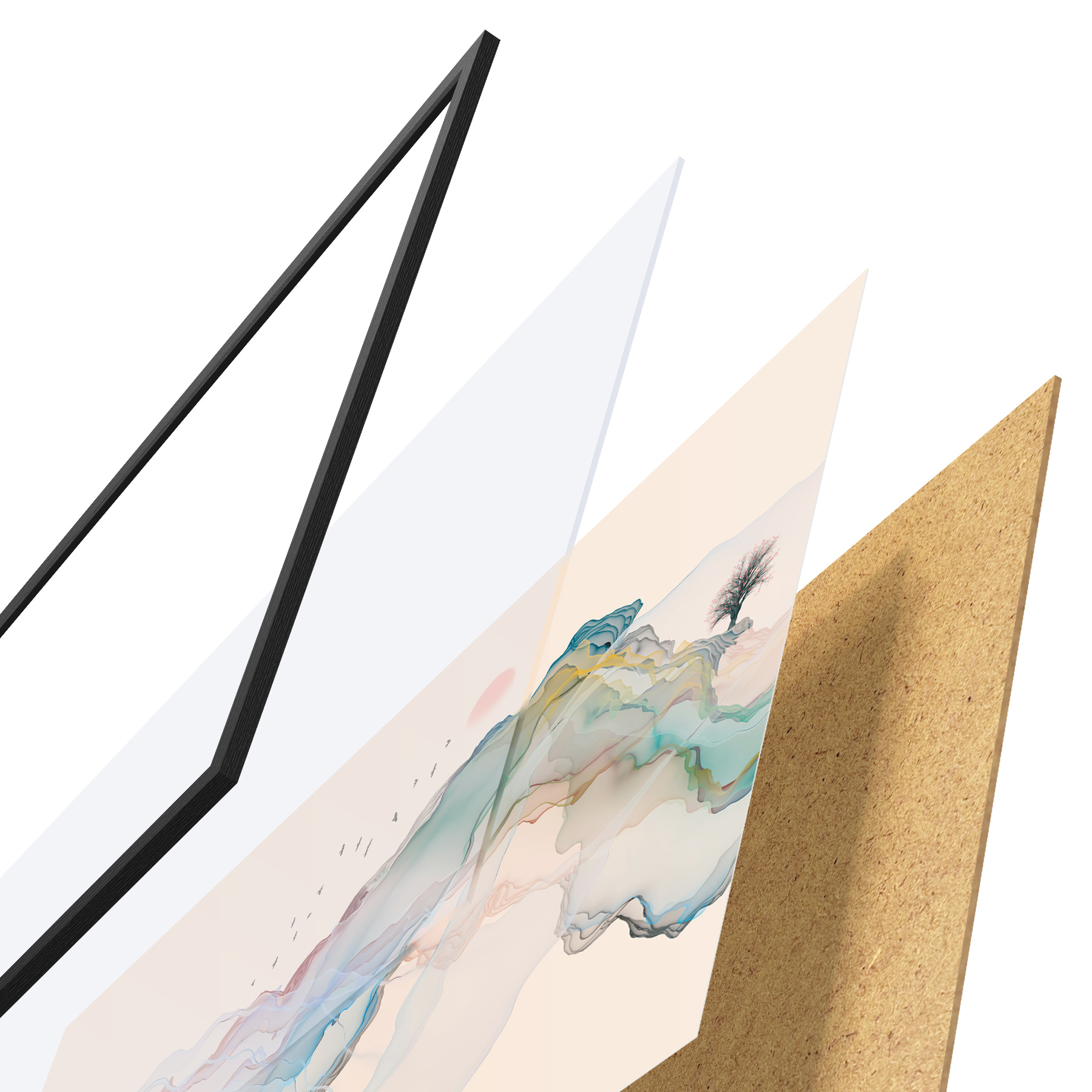 Plakatą sudaro rėmas, pleksiklas, atspausdintas vaizdas ir medžio drožlių plokštės pagrindas. Plakatą galima iš karto pakabinti ant sienos dėl kitoje pusėje esančių laikiklių.