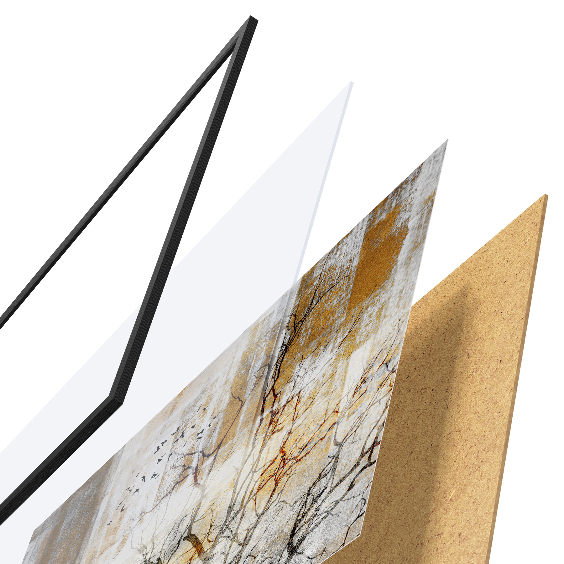 Plakatą sudaro rėmas, pleksiklas, atspausdintas vaizdas ir medžio drožlių plokštės pagrindas. Plakatą galima iš karto pakabinti ant sienos dėl kitoje pusėje esančių laikiklių.