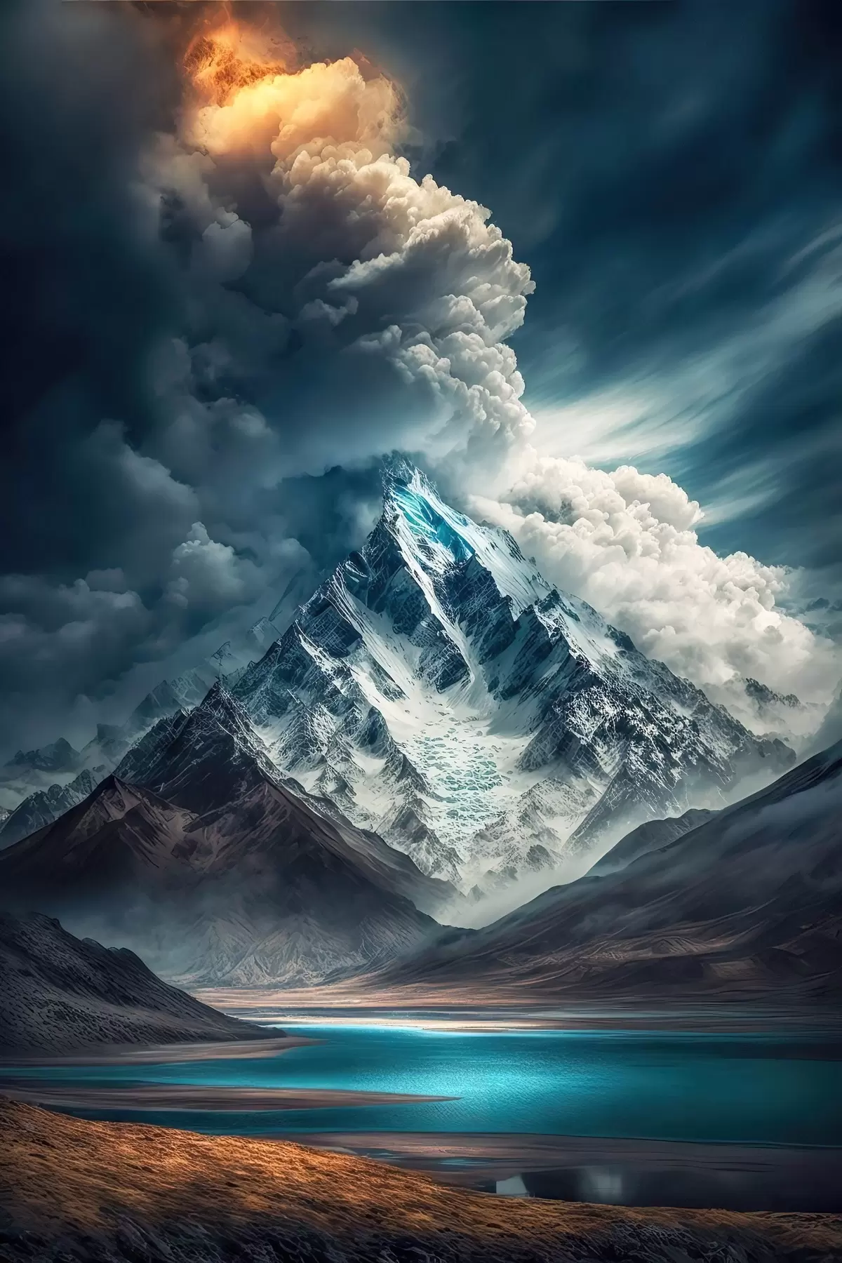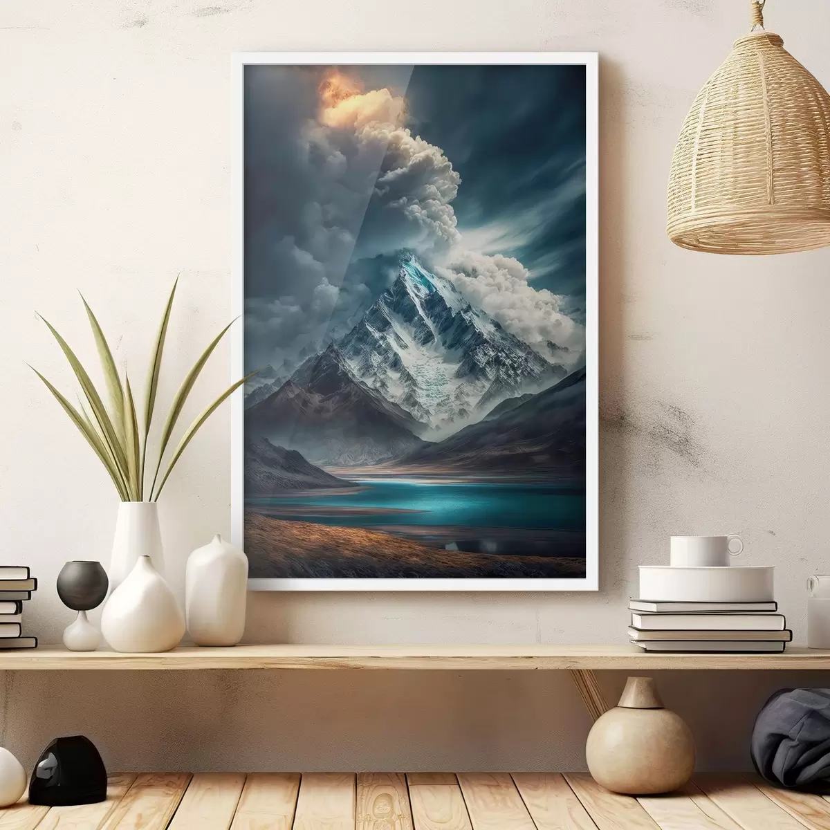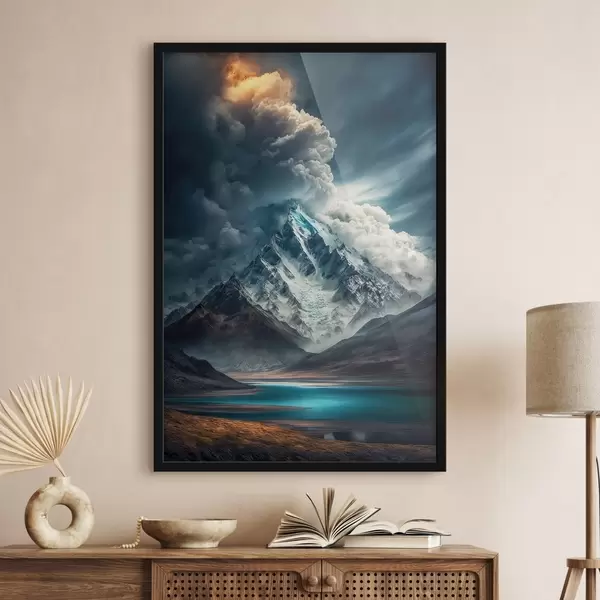 Plakatas Kalnai, ežeras ir didžiuliai debesys f33082