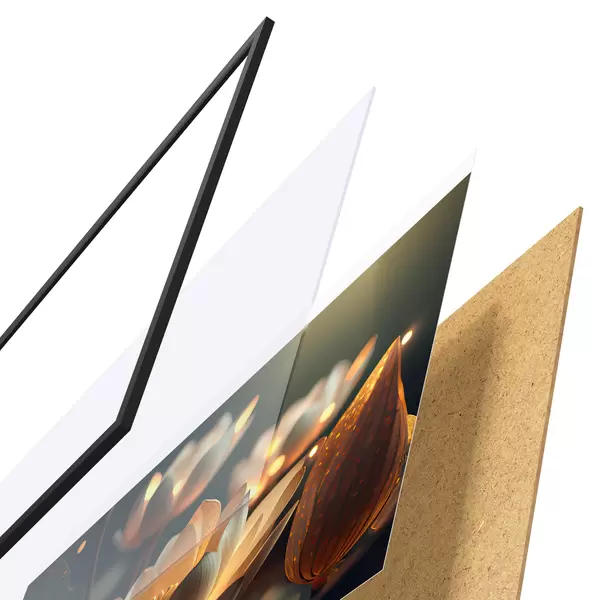 Plakatą sudaro rėmas, pleksiklas, atspausdintas vaizdas ir medžio drožlių plokštės pagrindas. Plakatą galima iš karto pakabinti ant sienos dėl kitoje pusėje esančių laikiklių.