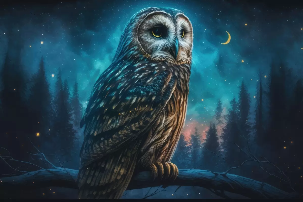 Plakatas Pelėda naktiniame miške Ne f33544