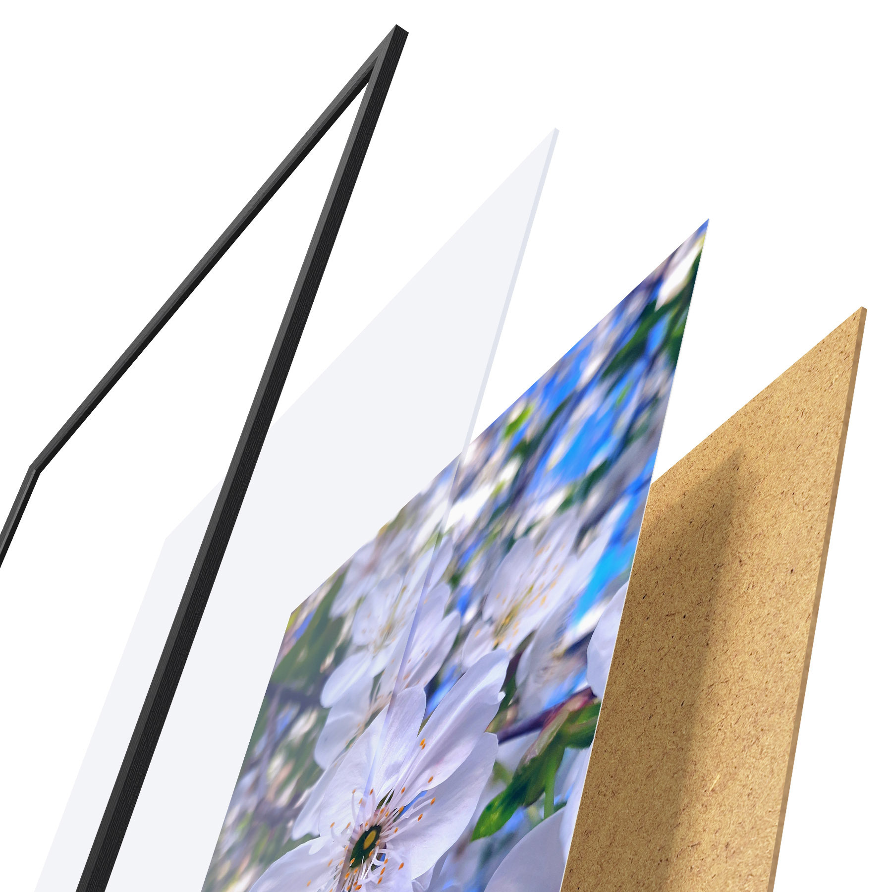 Plakatą sudaro rėmas, pleksiklas, atspausdintas vaizdas ir medžio drožlių plokštės pagrindas. Plakatą galima iš karto pakabinti ant sienos dėl kitoje pusėje esančių laikiklių.