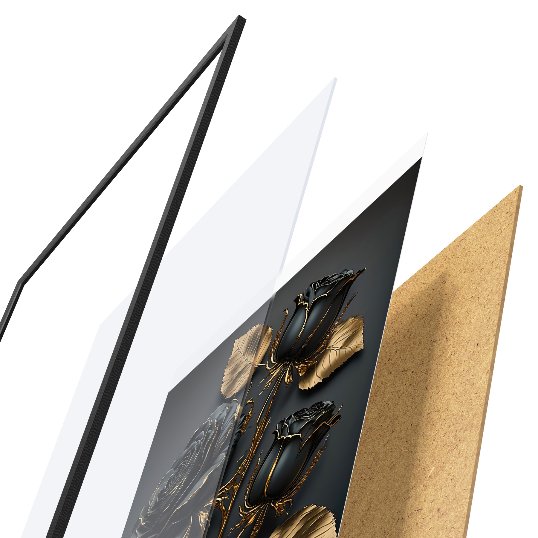 Plakatą sudaro rėmas, pleksiklas, atspausdintas vaizdas ir medžio drožlių plokštės pagrindas. Plakatą galima iš karto pakabinti ant sienos dėl kitoje pusėje esančių laikiklių.