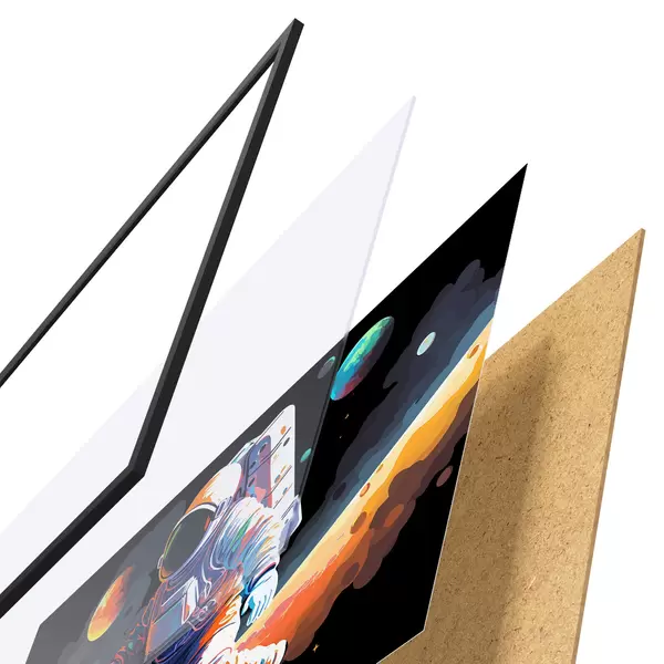 Plakatą sudaro rėmas, pleksiklas, atspausdintas vaizdas ir medžio drožlių plokštės pagrindas. Plakatą galima iš karto pakabinti ant sienos dėl kitoje pusėje esančių laikiklių.