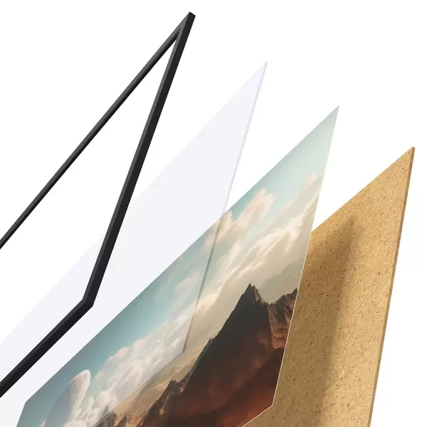 Plakatą sudaro rėmas, pleksiklas, atspausdintas vaizdas ir medžio drožlių plokštės pagrindas. Plakatą galima iš karto pakabinti ant sienos dėl kitoje pusėje esančių laikiklių.