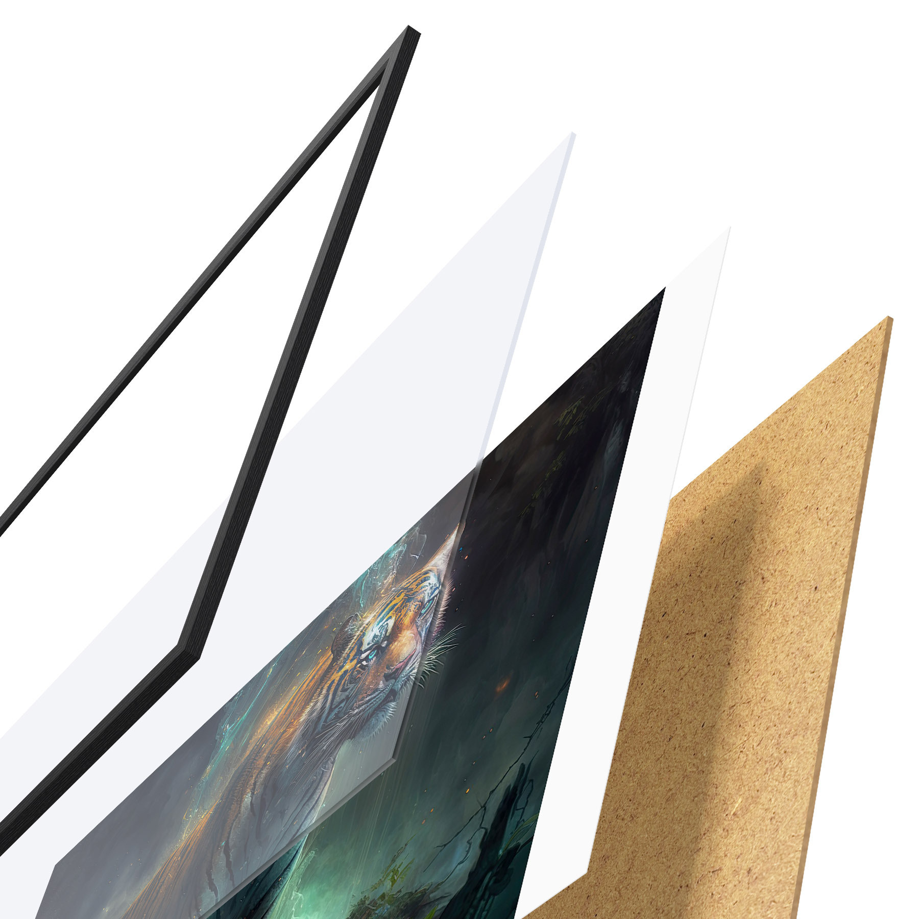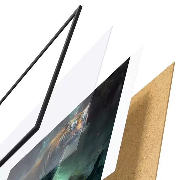 Plakatą sudaro rėmas, pleksiklas, atspausdintas vaizdas ir medžio drožlių plokštės pagrindas. Plakatą galima iš karto pakabinti ant sienos dėl kitoje pusėje esančių laikiklių.