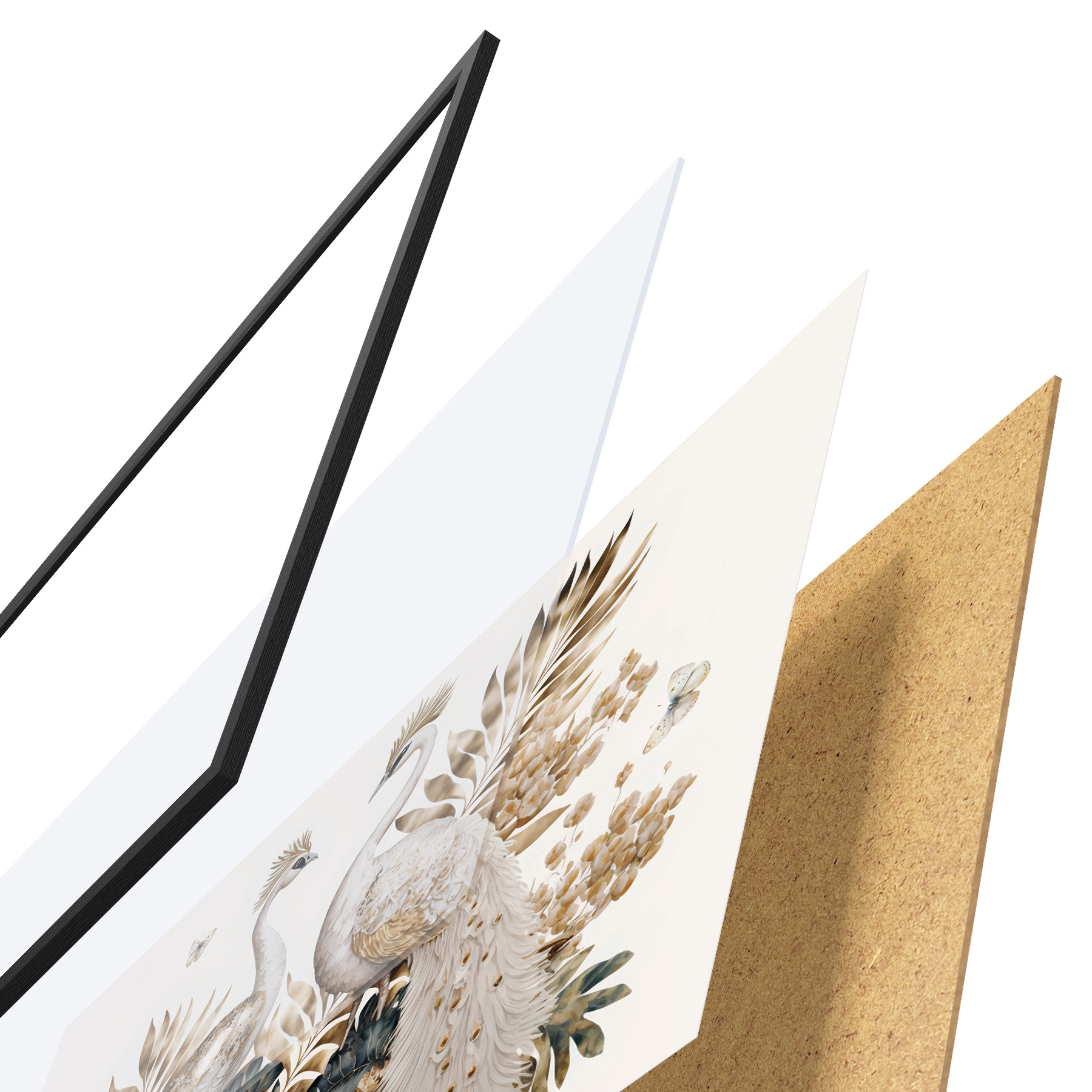 Plakatą sudaro rėmas, pleksiklas, atspausdintas vaizdas ir medžio drožlių plokštės pagrindas. Plakatą galima iš karto pakabinti ant sienos dėl kitoje pusėje esančių laikiklių.