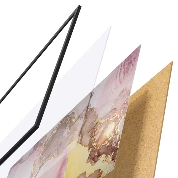 Plakatą sudaro rėmas, pleksiklas, atspausdintas vaizdas ir medžio drožlių plokštės pagrindas. Plakatą galima iš karto pakabinti ant sienos dėl kitoje pusėje esančių laikiklių.