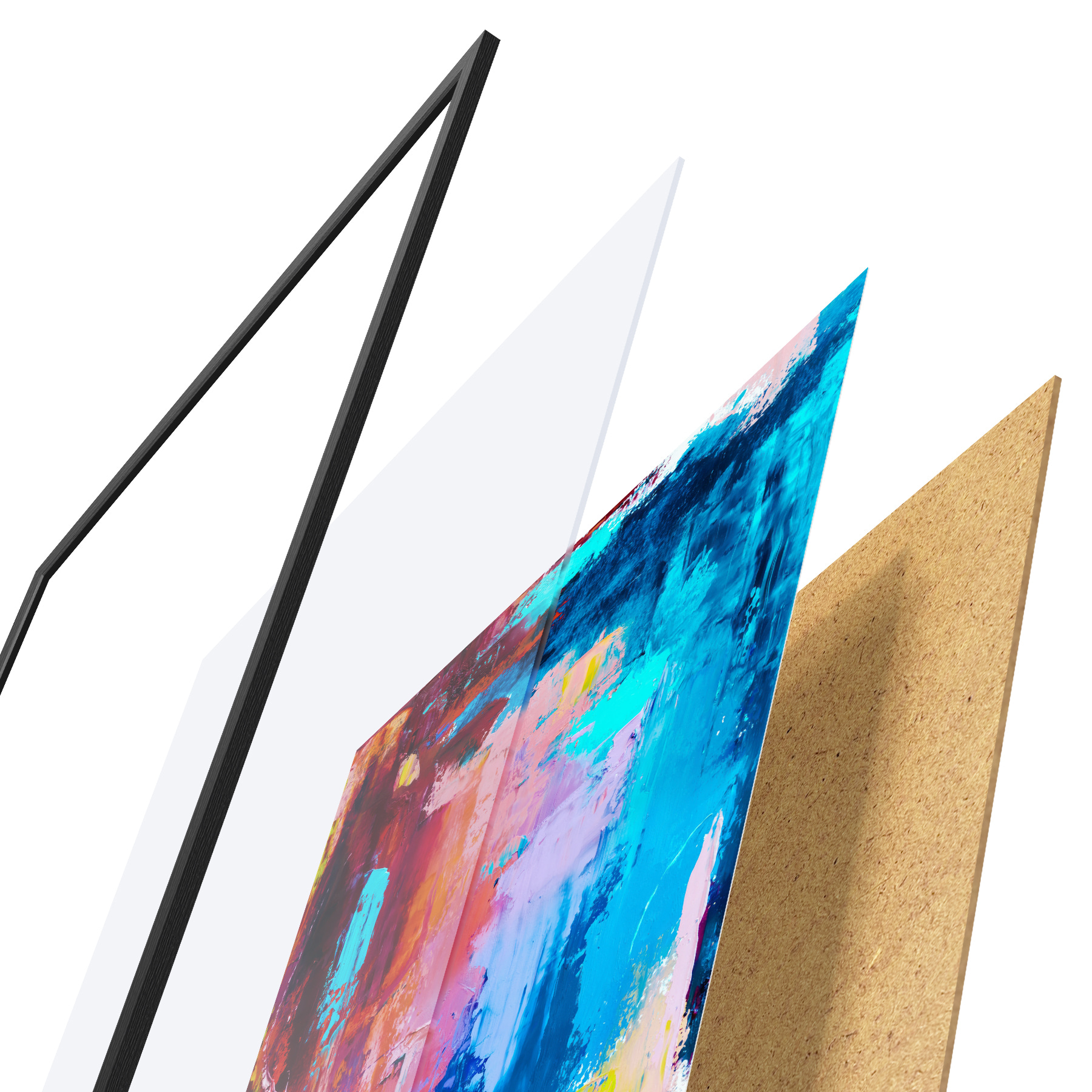 Plakatą sudaro rėmas, pleksiklas, atspausdintas vaizdas ir medžio drožlių plokštės pagrindas. Plakatą galima iš karto pakabinti ant sienos dėl kitoje pusėje esančių laikiklių.