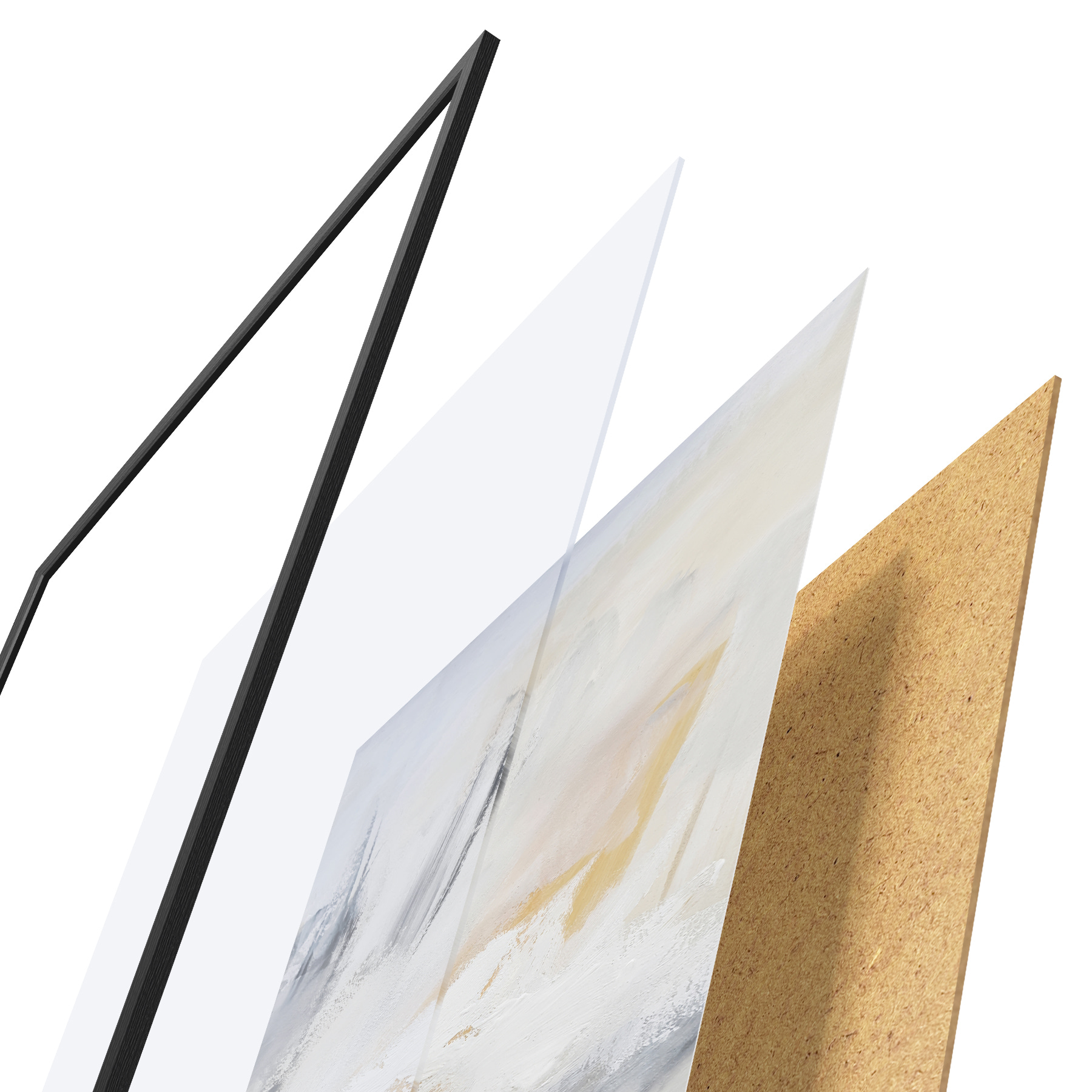 Plakatą sudaro rėmas, pleksiklas, atspausdintas vaizdas ir medžio drožlių plokštės pagrindas. Plakatą galima iš karto pakabinti ant sienos dėl kitoje pusėje esančių laikiklių.