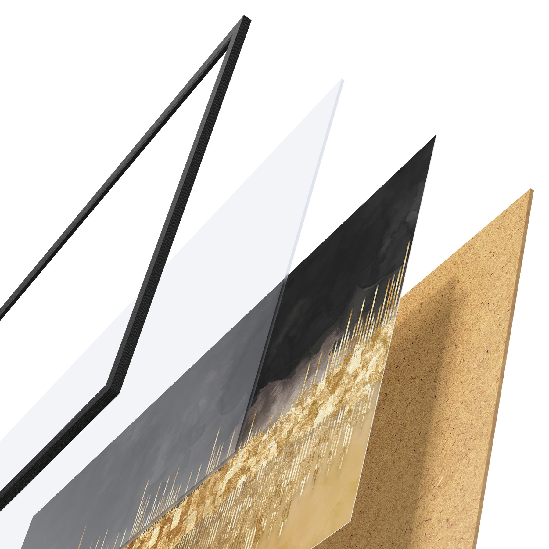 Plakatą sudaro rėmas, pleksiklas, atspausdintas vaizdas ir medžio drožlių plokštės pagrindas. Plakatą galima iš karto pakabinti ant sienos dėl kitoje pusėje esančių laikiklių.