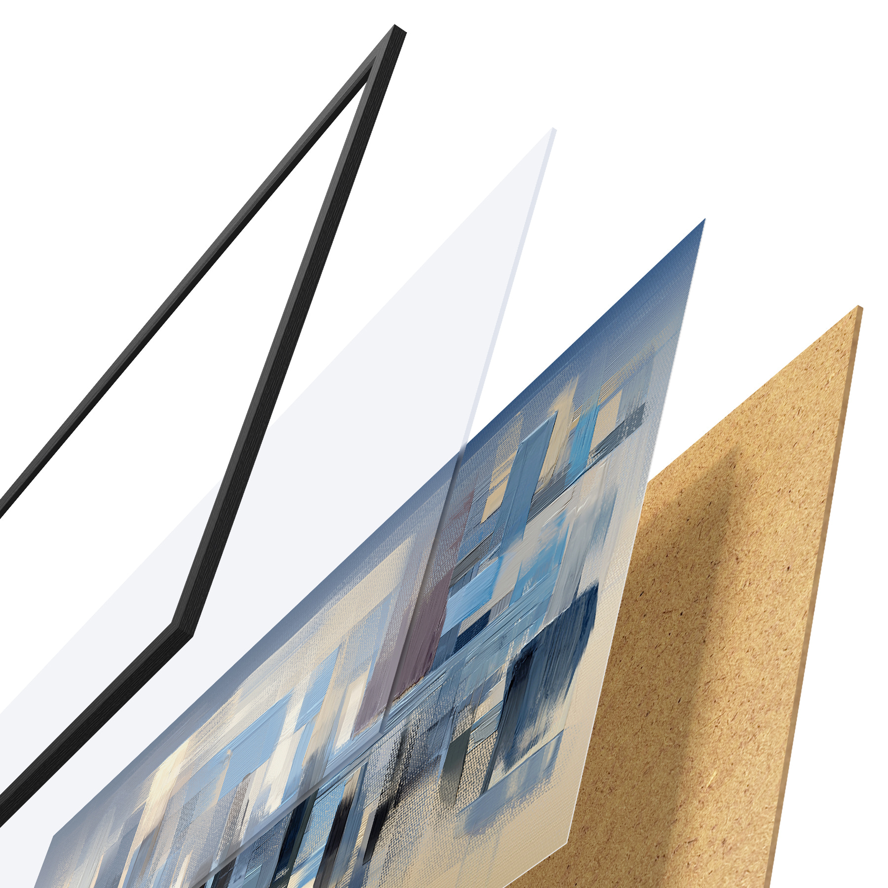 Plakatą sudaro rėmas, pleksiklas, atspausdintas vaizdas ir medžio drožlių plokštės pagrindas. Plakatą galima iš karto pakabinti ant sienos dėl kitoje pusėje esančių laikiklių.
