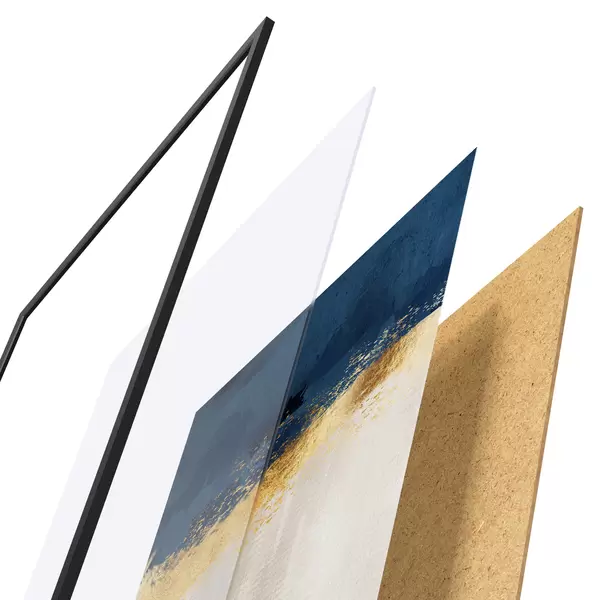 Plakatą sudaro rėmas, pleksiklas, atspausdintas vaizdas ir medžio drožlių plokštės pagrindas. Plakatą galima iš karto pakabinti ant sienos dėl kitoje pusėje esančių laikiklių.