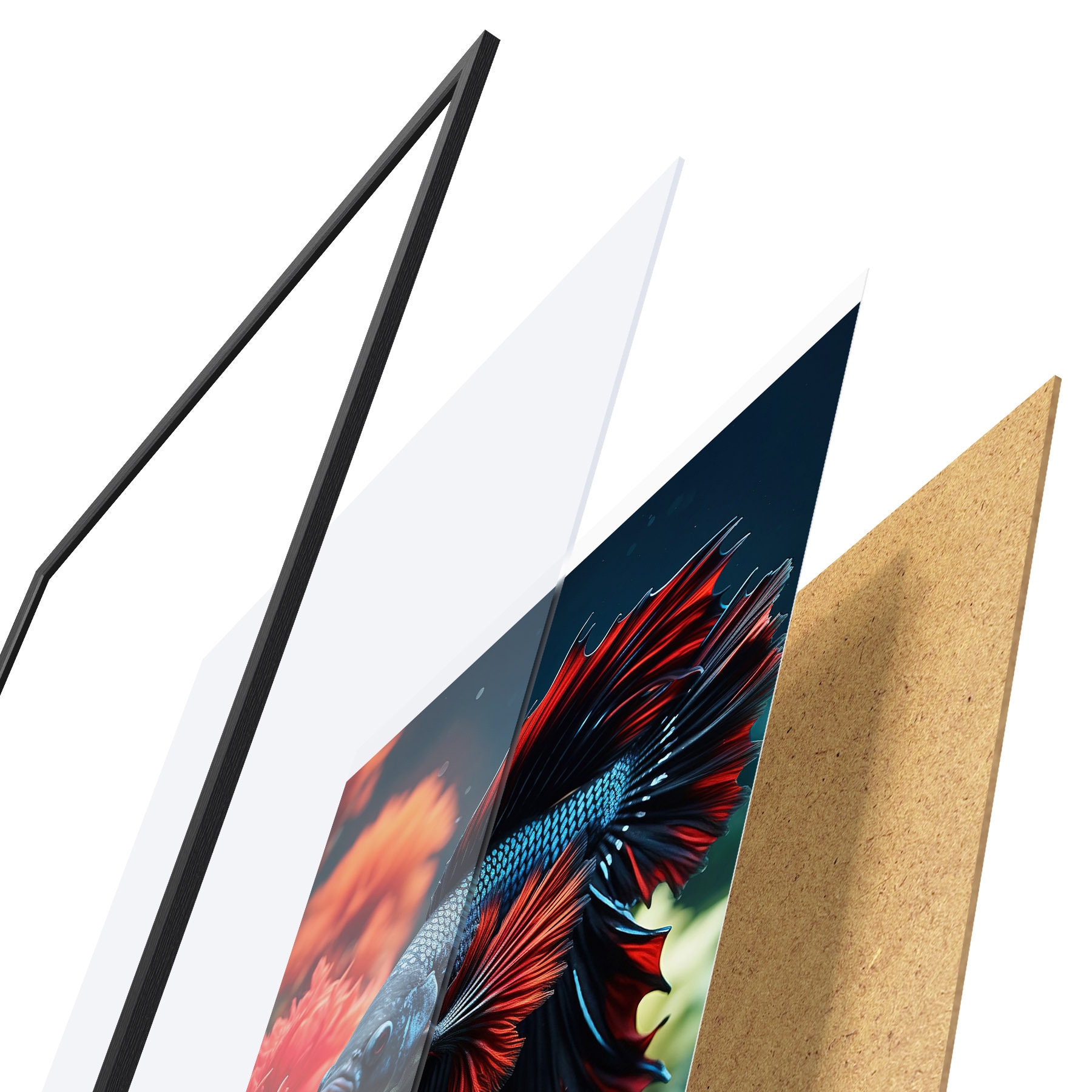 Plakatą sudaro rėmas, pleksiklas, atspausdintas vaizdas ir medžio drožlių plokštės pagrindas. Plakatą galima iš karto pakabinti ant sienos dėl kitoje pusėje esančių laikiklių.