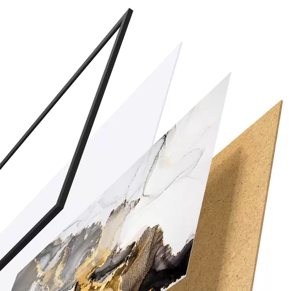 Plakatą sudaro rėmas, pleksiklas, atspausdintas vaizdas ir medžio drožlių plokštės pagrindas. Plakatą galima iš karto pakabinti ant sienos dėl kitoje pusėje esančių laikiklių.