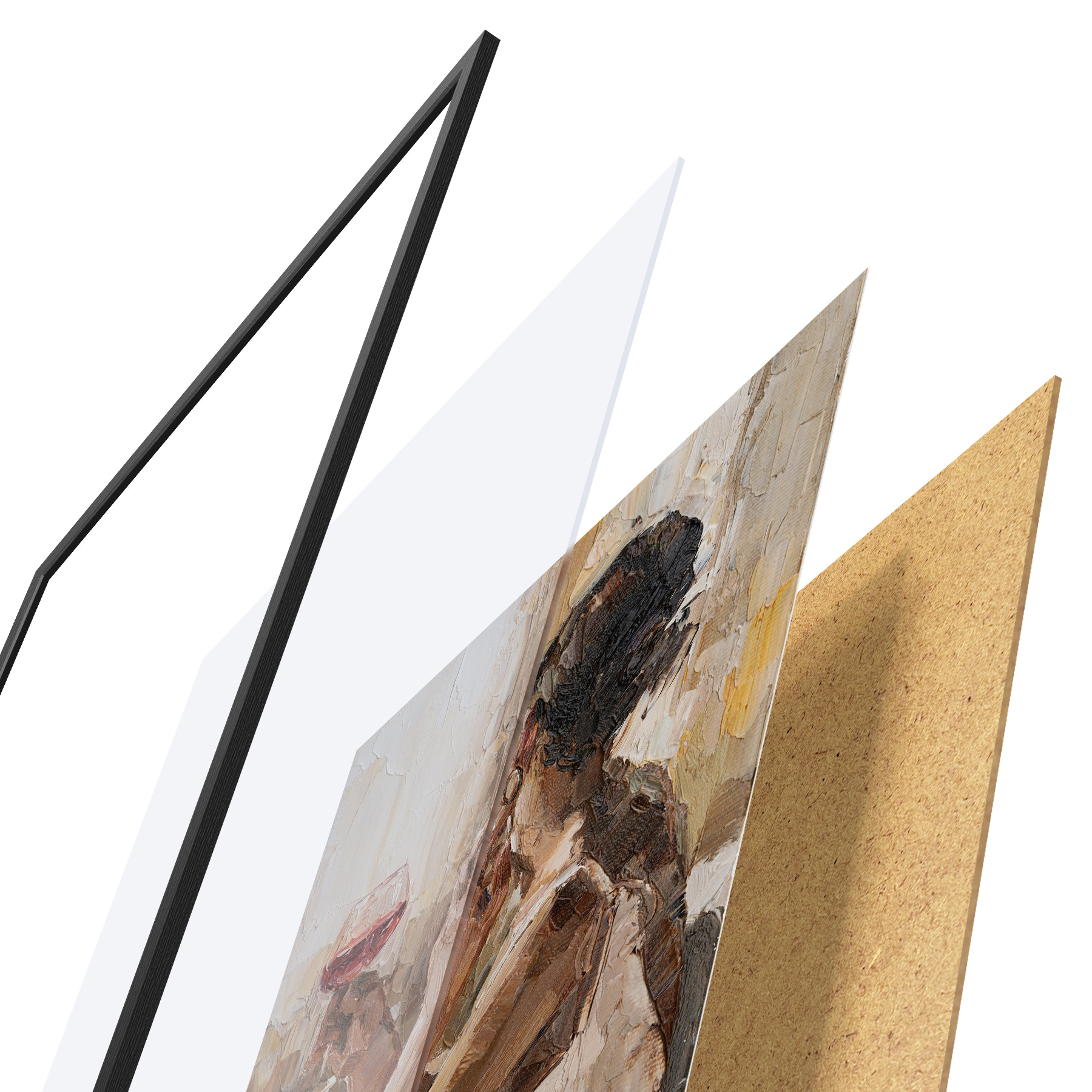 Plakatą sudaro rėmas, pleksiklas, atspausdintas vaizdas ir medžio drožlių plokštės pagrindas. Plakatą galima iš karto pakabinti ant sienos dėl kitoje pusėje esančių laikiklių.