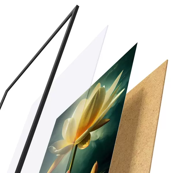Plakatą sudaro rėmas, pleksiklas, atspausdintas vaizdas ir medžio drožlių plokštės pagrindas. Plakatą galima iš karto pakabinti ant sienos dėl kitoje pusėje esančių laikiklių.