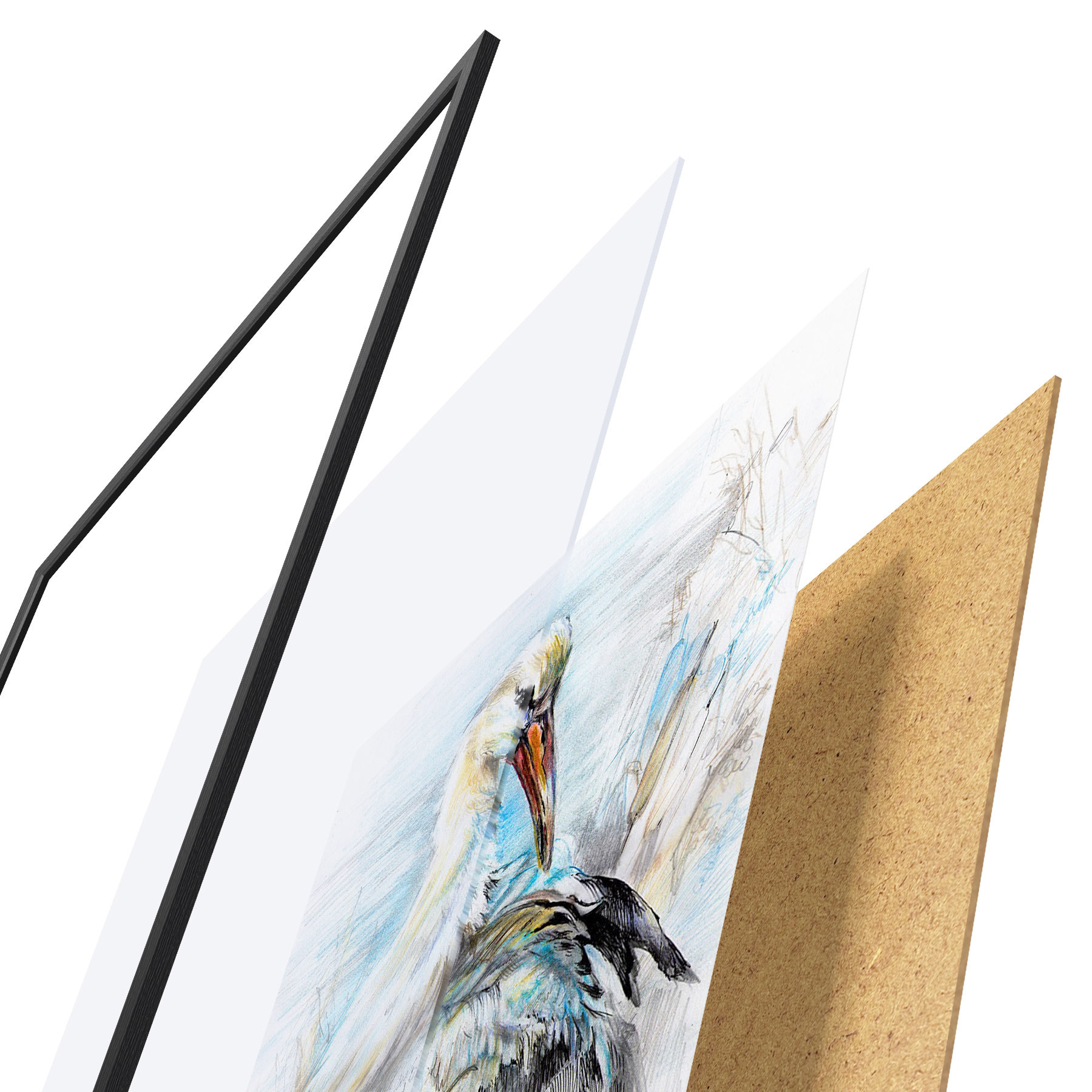 Plakatą sudaro rėmas, pleksiklas, atspausdintas vaizdas ir medžio drožlių plokštės pagrindas. Plakatą galima iš karto pakabinti ant sienos dėl kitoje pusėje esančių laikiklių.