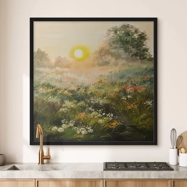 Plakatas Tapyba aliejiniais dažais - saulėlydis lauke Ne f34612