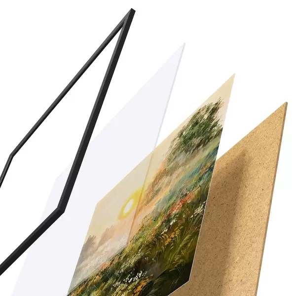 Plakatą sudaro rėmas, pleksiklas, atspausdintas vaizdas ir medžio drožlių plokštės pagrindas. Plakatą galima iš karto pakabinti ant sienos dėl kitoje pusėje esančių laikiklių.