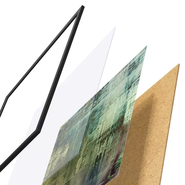 Plakatą sudaro rėmas, pleksiklas, atspausdintas vaizdas ir medžio drožlių plokštės pagrindas. Plakatą galima iš karto pakabinti ant sienos dėl kitoje pusėje esančių laikiklių.
