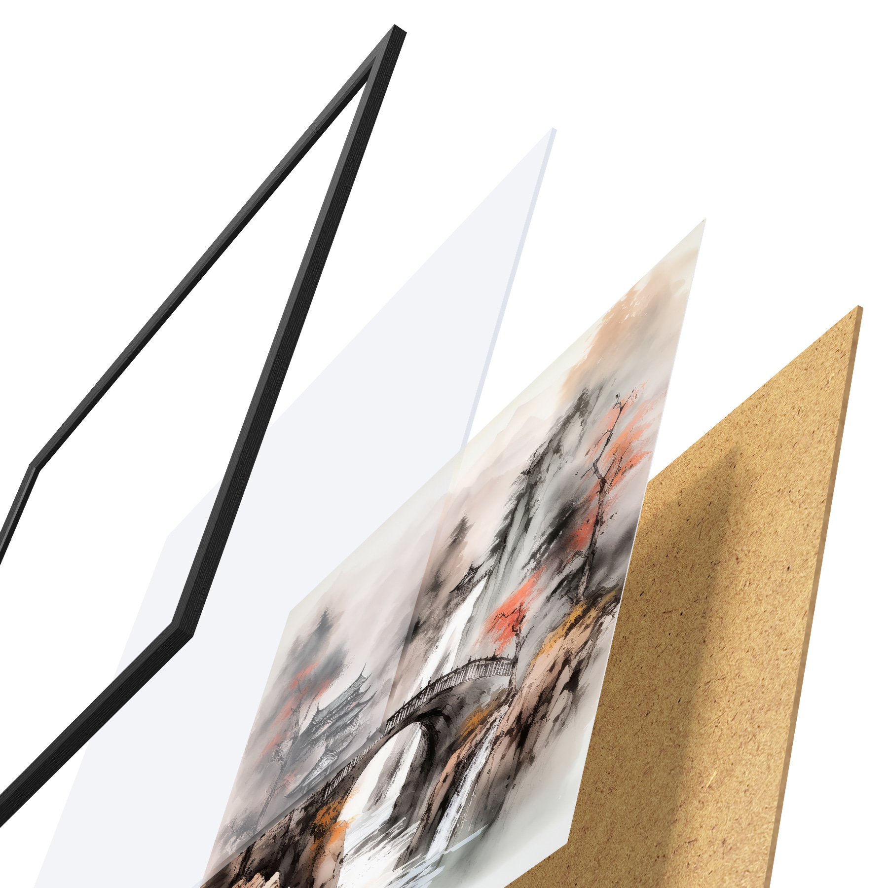 Plakatą sudaro rėmas, pleksiklas, atspausdintas vaizdas ir medžio drožlių plokštės pagrindas. Plakatą galima iš karto pakabinti ant sienos dėl kitoje pusėje esančių laikiklių.