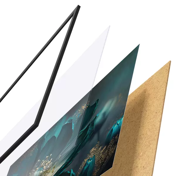 Plakatą sudaro rėmas, pleksiklas, atspausdintas vaizdas ir medžio drožlių plokštės pagrindas. Plakatą galima iš karto pakabinti ant sienos dėl kitoje pusėje esančių laikiklių.