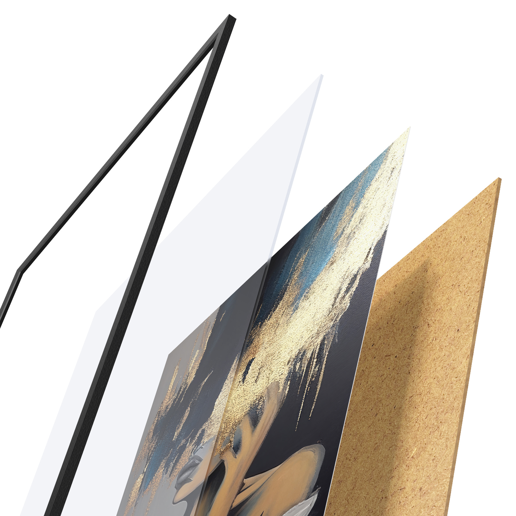 Plakatą sudaro rėmas, pleksiklas, atspausdintas vaizdas ir medžio drožlių plokštės pagrindas. Plakatą galima iš karto pakabinti ant sienos dėl kitoje pusėje esančių laikiklių.