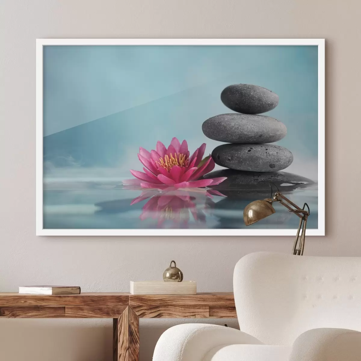 Plakatas Rožinis lotosas ir akmenys Ne f34932