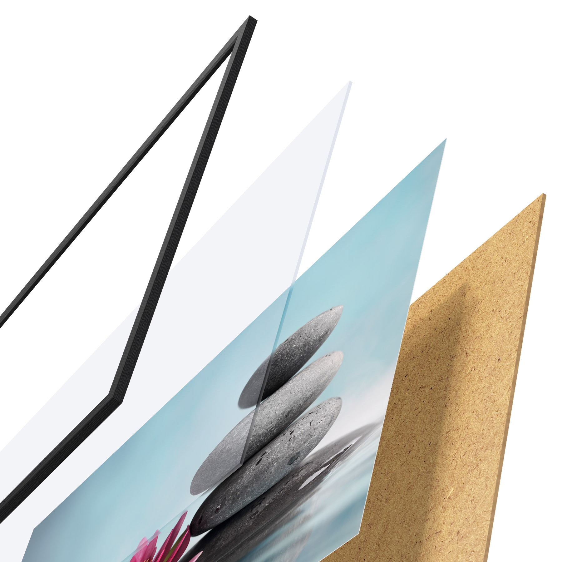 Plakatą sudaro rėmas, pleksiklas, atspausdintas vaizdas ir medžio drožlių plokštės pagrindas. Plakatą galima iš karto pakabinti ant sienos dėl kitoje pusėje esančių laikiklių.