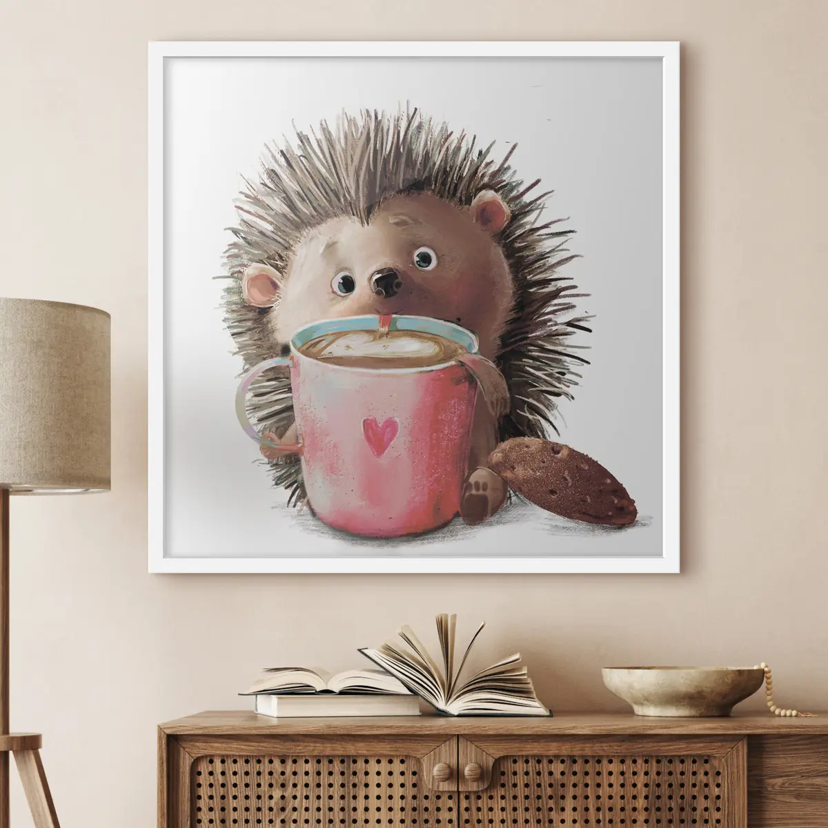 Plakatas Ežiukas ir puodelis kavos Ne f35039