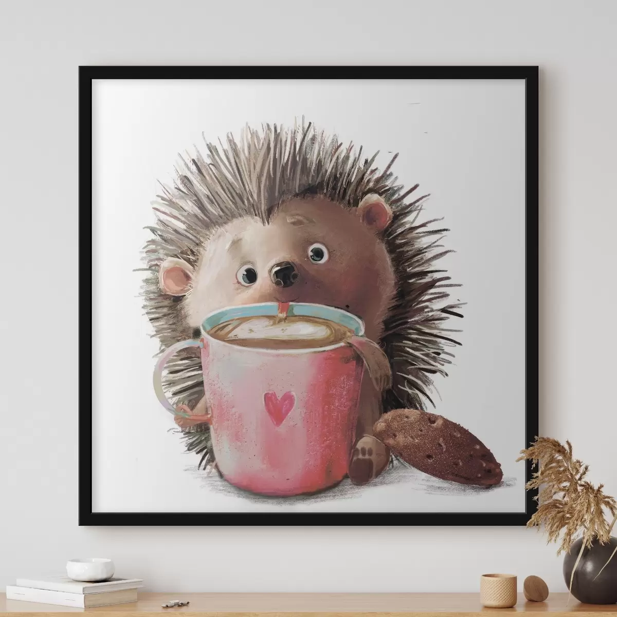 Plakatas Ežiukas ir puodelis kavos Ne f35039