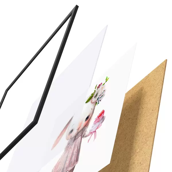 Plakatą sudaro rėmas, pleksiklas, atspausdintas vaizdas ir medžio drožlių plokštės pagrindas. Plakatą galima iš karto pakabinti ant sienos dėl kitoje pusėje esančių laikiklių.