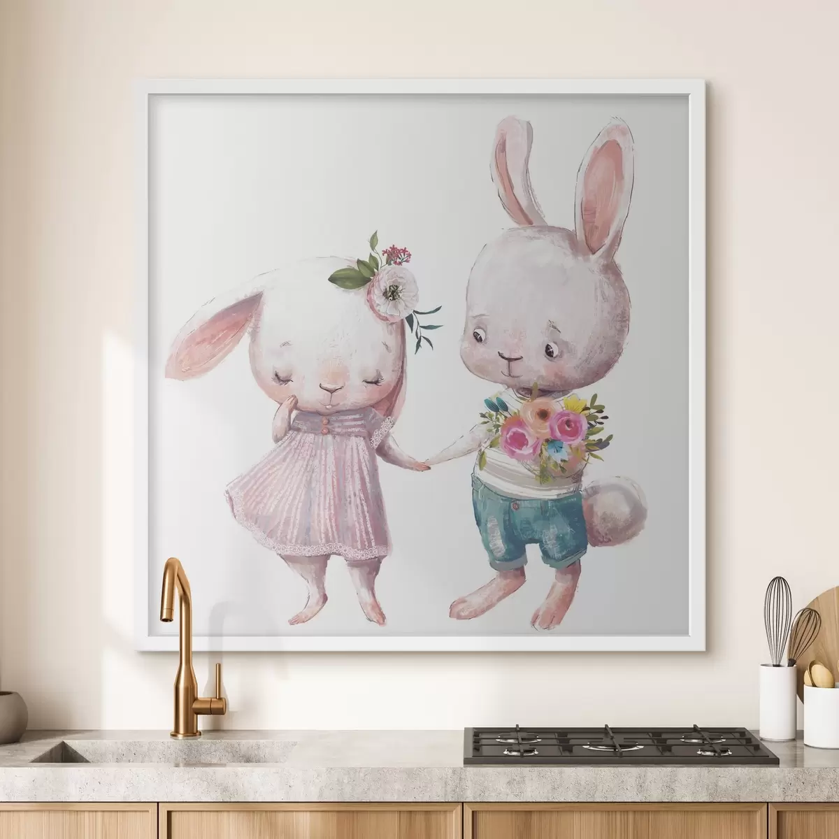 Plakatas Pora pasimatymų zuikučių ir gėlių Ne f35055