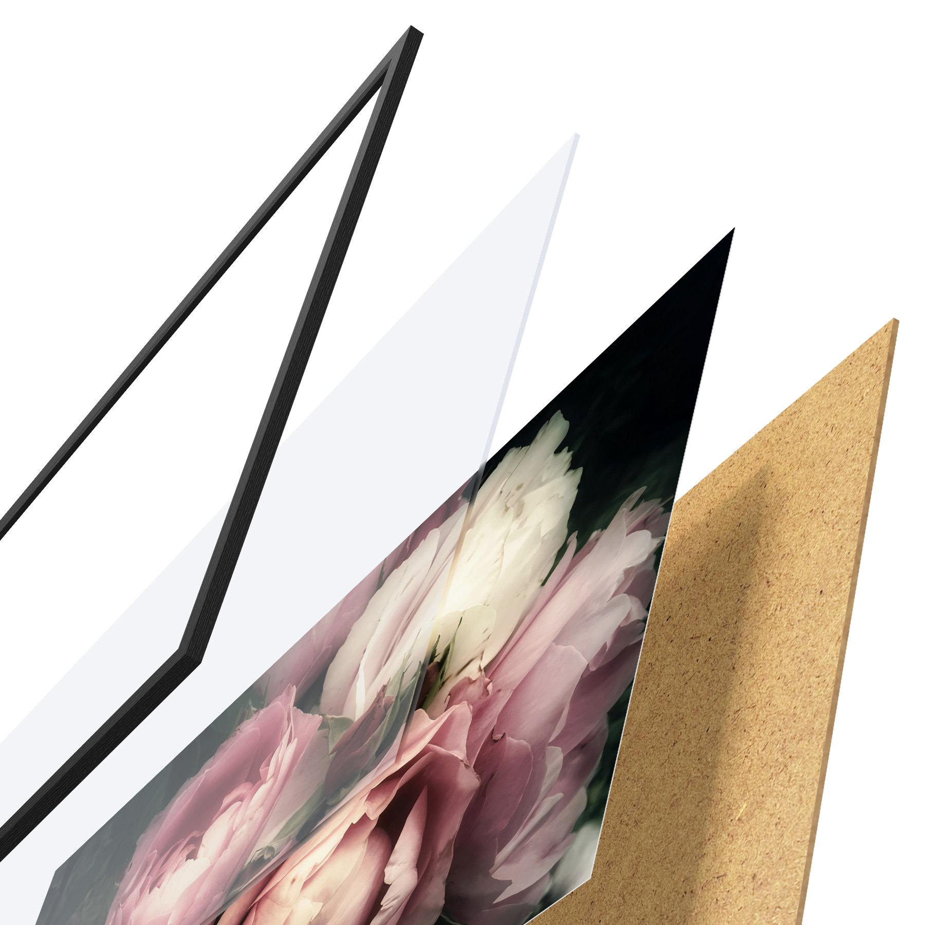Plakatą sudaro rėmas, pleksiklas, atspausdintas vaizdas ir medžio drožlių plokštės pagrindas. Plakatą galima iš karto pakabinti ant sienos dėl kitoje pusėje esančių laikiklių.
